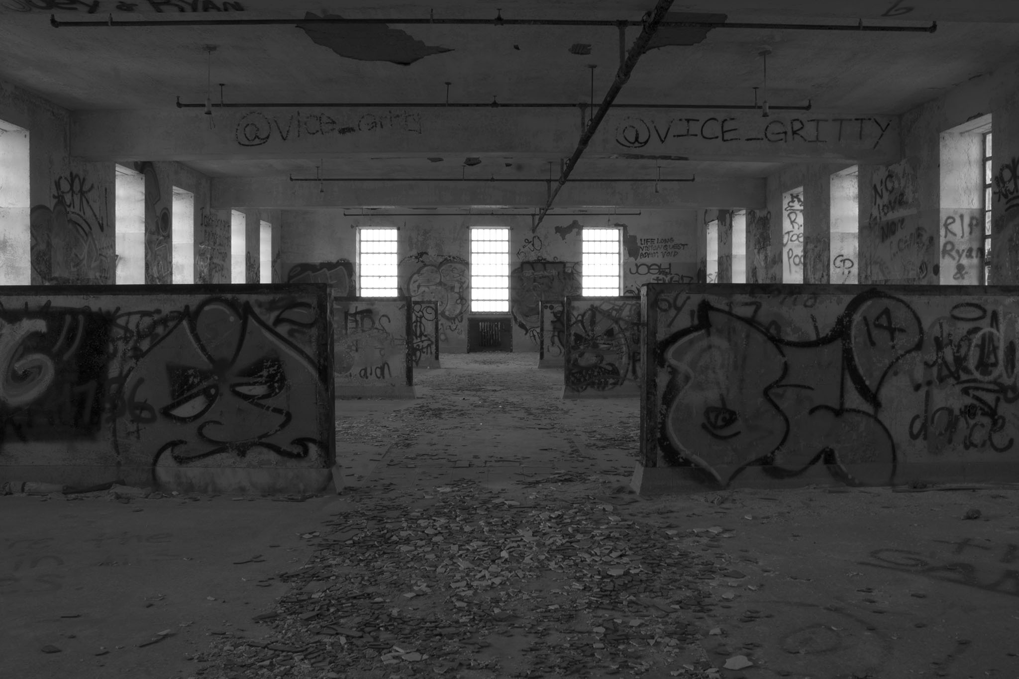 Many would see the monolithic 159-foot structure known as building No. 93 as they underwent the process of institutionalization; afterwards, they sought residence on the active floors. Despite having 13 floors, only a third of them were in use; the remaining 2/3 have been closed off since the 1970s. In 1996, the entirety of the building along with many others on the grounds closed. Some buildings still operated afterwards; building No. 7 received electricity until 2001, and building No. 1 served as an administrative office until 2012.