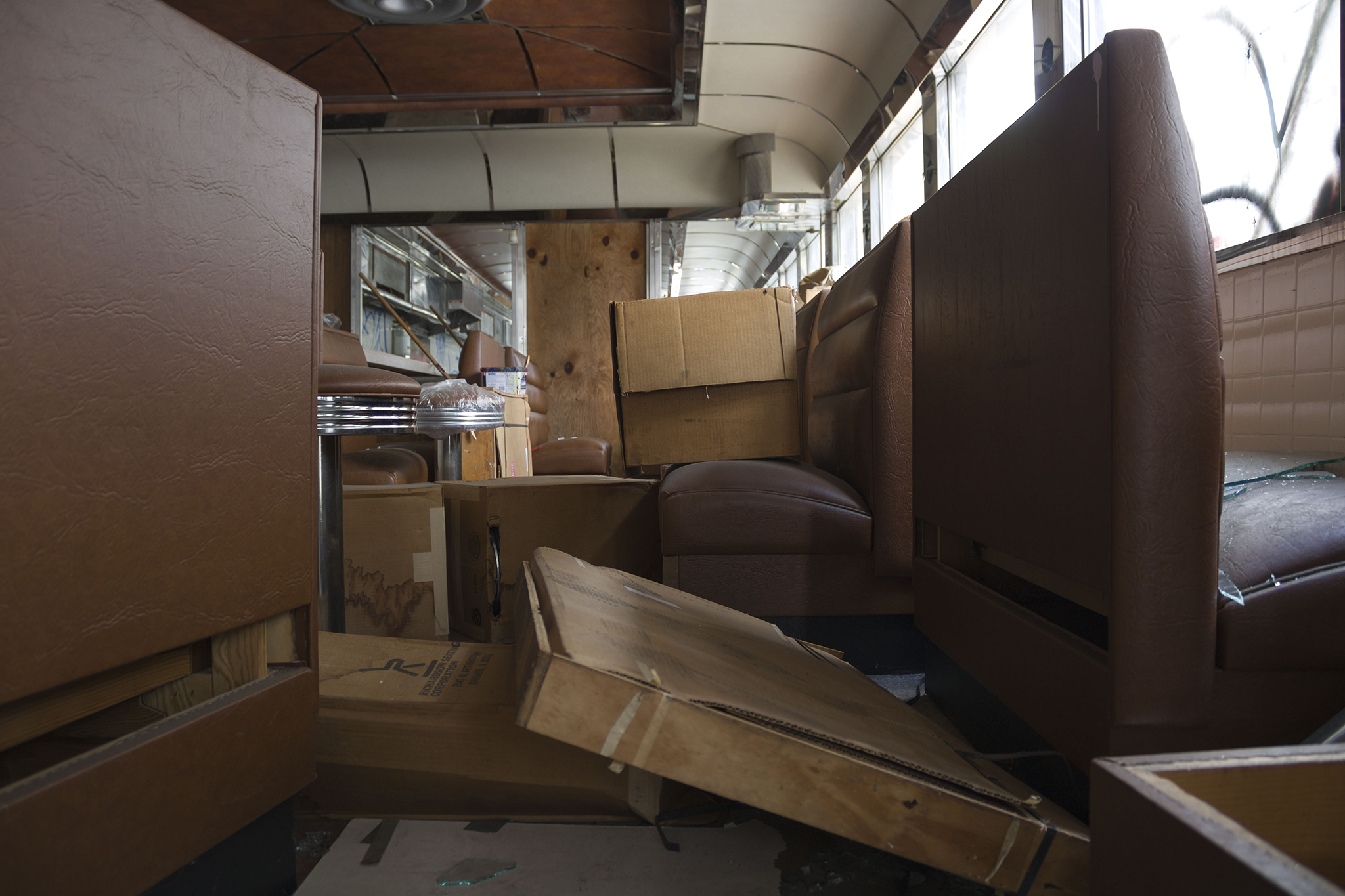 At the time of purchase, the bar had been undergoing renovations of its own. So would the diner, mainly to blend the aesthetics of both buildings. Stripping the red Blue Sky banner that wrapped around the exterior into a striped black-and-white pattern. Further work would be renovating the interior, removing the patterned titles in favor of desaturating everything in an off-white. For some reason, unbeknownst to the public, construction work at the site would be halted in 2013. The remnants of a failed renovation remain, as boxes weighed with construction materials occupy part of the space.